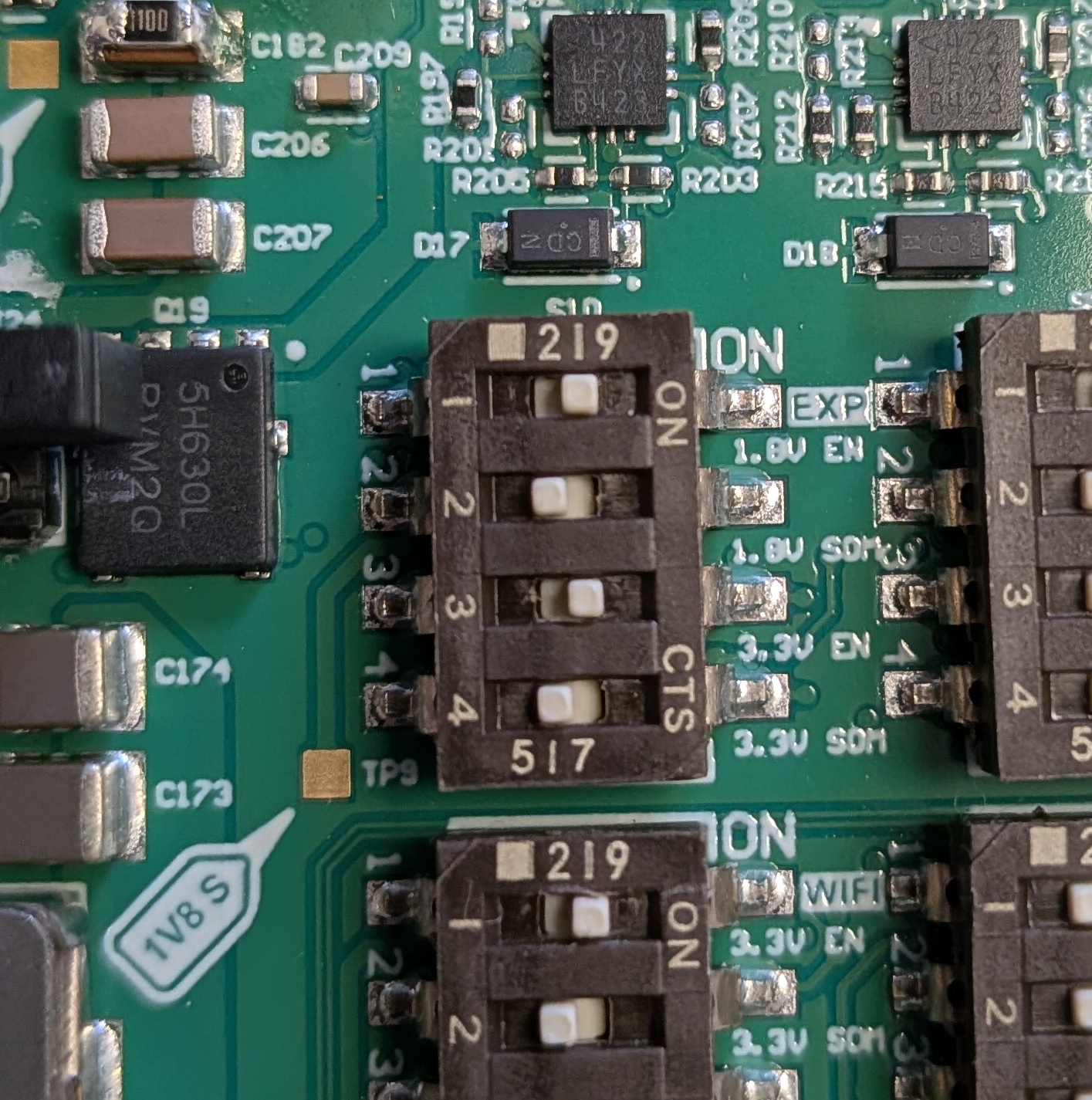 - Enable the 1V8-EXP power output by setting the DIP switch S10-1 to the ON position.