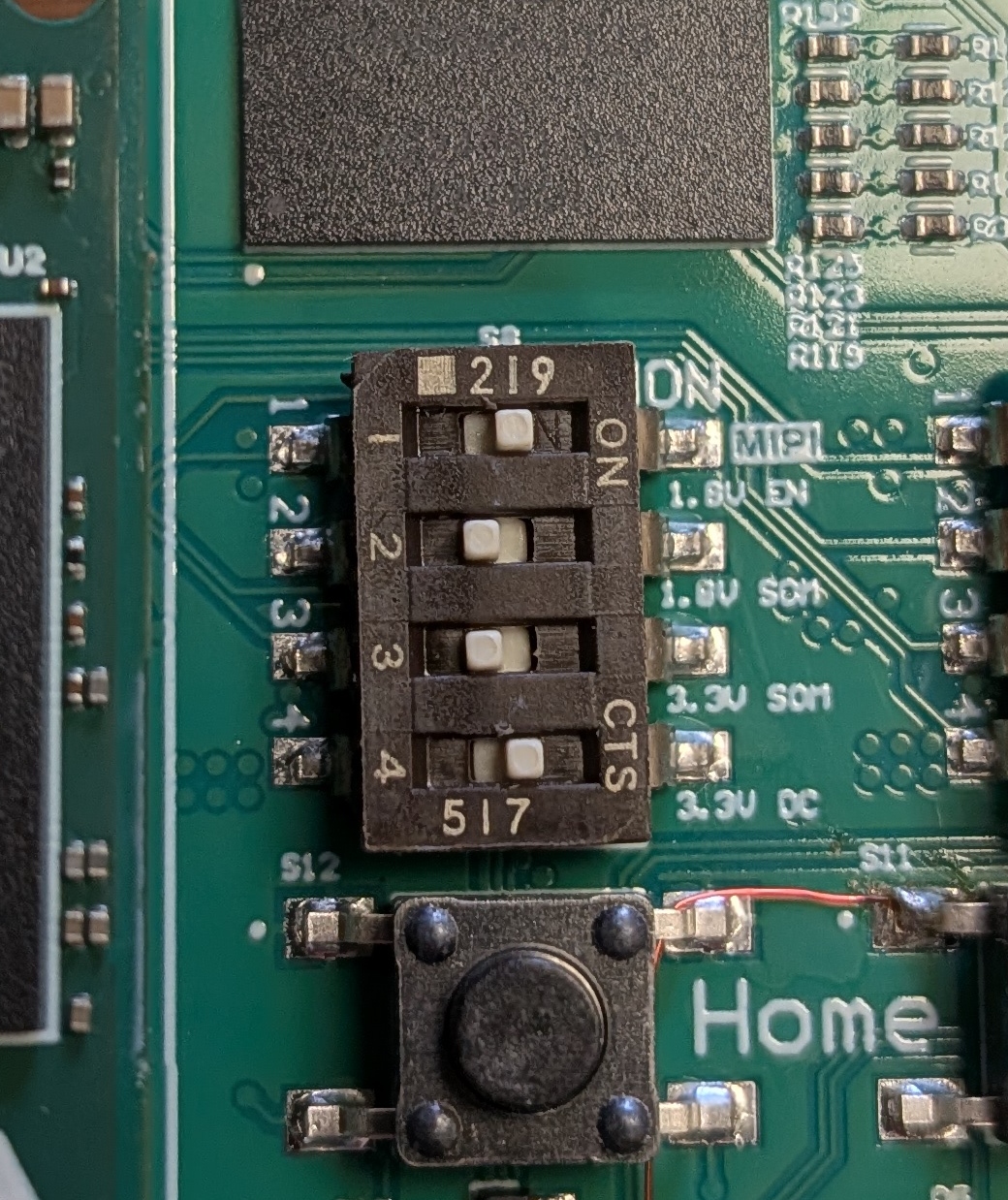 - Switch 4 should be set to enable the 3V3 CSI from the DC supply